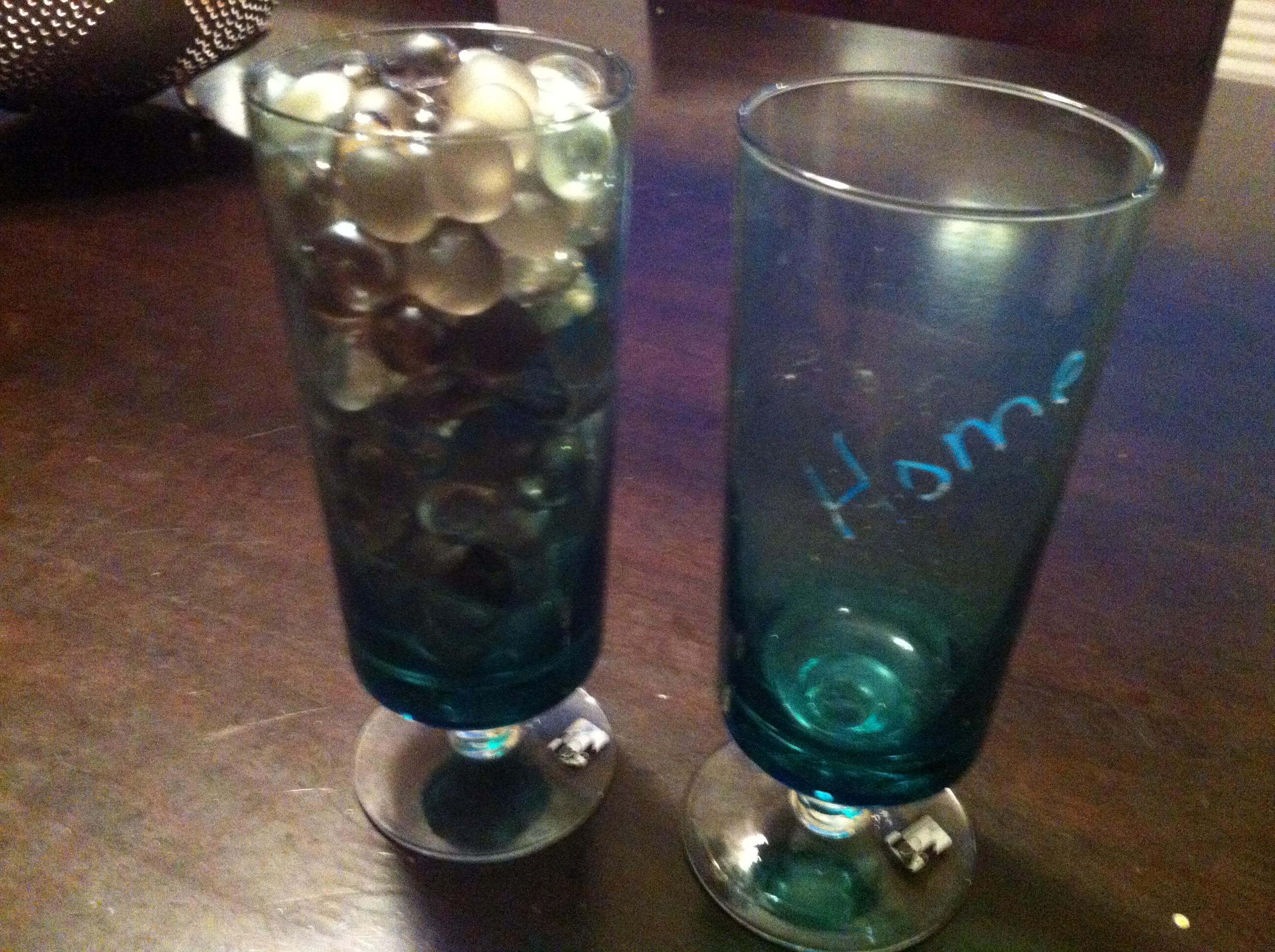 I found two glasses that were exactly the same size. Then I found some decorative marbles and wrote “home” on one and “Bruester’s” on the other one with a glass marker. When we started all of the marbles were in the “Home” jar because we weren’t going anywhere until they had shown that they could SHUT THE DOOR! Whenever one of them closed the door, they moved a pebble (“fruity pebbles” as Hope called them) to the “Bruester’s” jar. If Andrew or I closed the door, we moved a pebble from the “Bruester’s” jar to the “Home” jar. When all of the pebbles were moved into the “Bruester’s” jar, we would go out for ice cream.