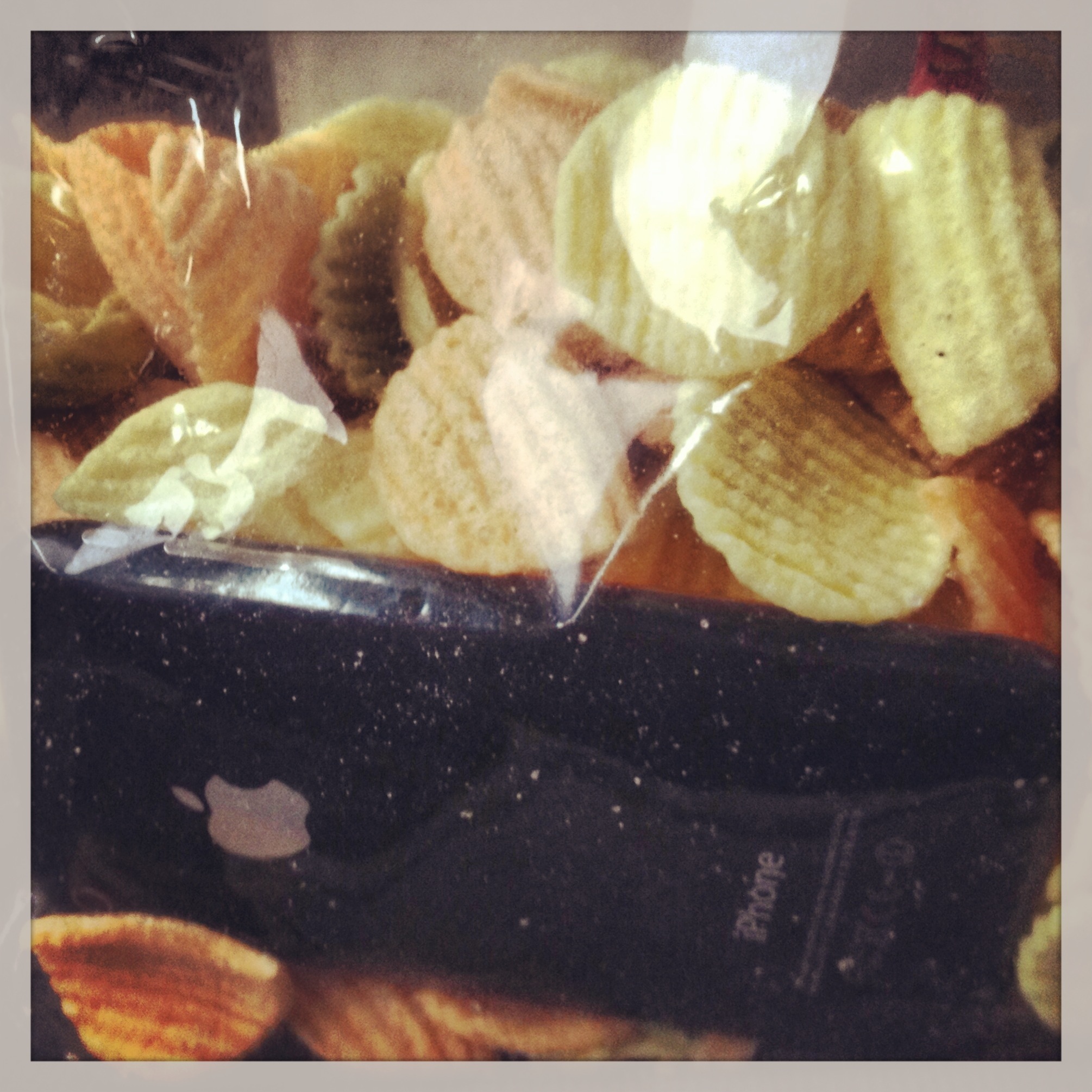 This is what I found in my minivan this week. I guess the girls (age 3 and 5) aren’t ready to be responsible for an iPod Touch. It was at the bottom of a bag of chips. In my imagination I hear some of you saying “Well…duh…I would never give my kids an iPhone.”